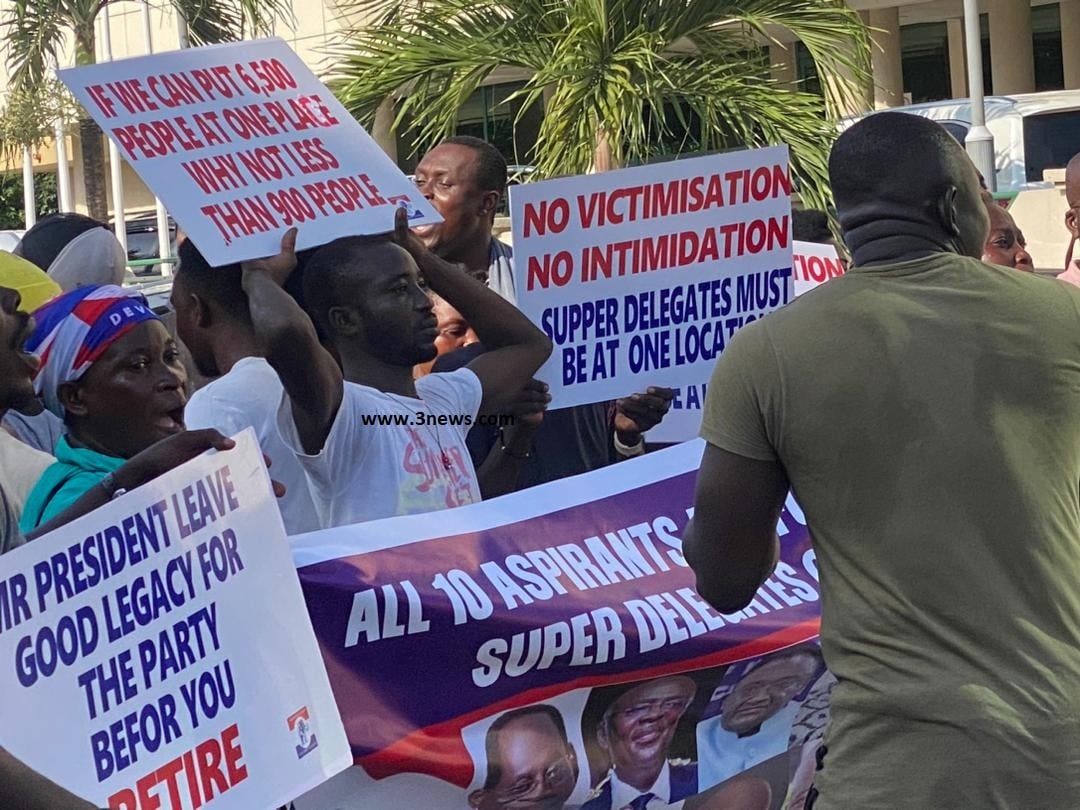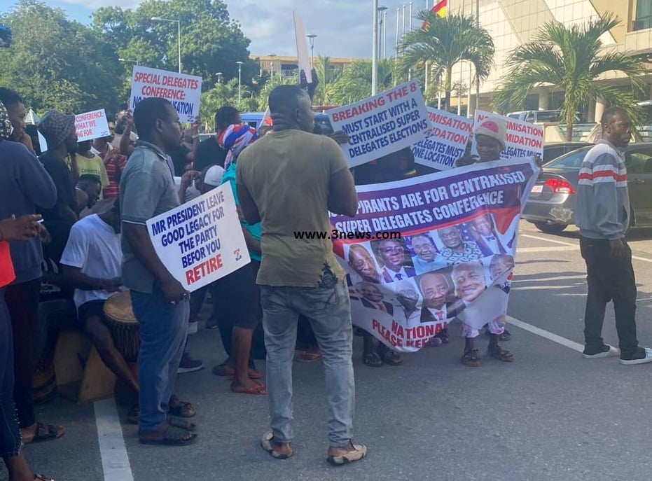 Some placard-wielding supporters of the New Patriotic Party (NPP) were at the Alisa Hotel in Accra to register their displeasure over the modalities for next month’s National Congress by the Special Electoral College.